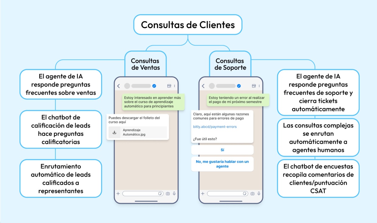 Integra la atención automática de canales de chat y redes sociales, tales como: WhatsApp, Facebook, Instagram, Telegram y chat web, a través de una única aplicación con capacidad para atender hasta 180 conversaciones simultáneas por minuto, reduciendo así los costes fijos de nómina de empleados y sin necesidad de contar con un departamento de desarrollo de software.